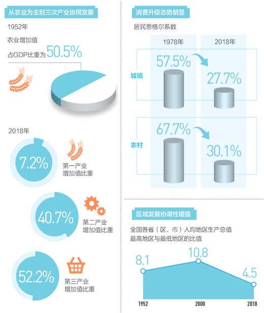 国家统计局日前发布《新中国成立70周年经济社会发展成就系列报告》显示,我国经济结构发生深刻变化,产业、需求、区域结构不断优化,发展协调性显著增强。